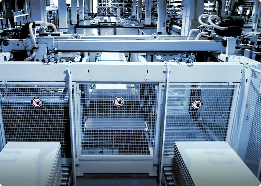 终端订单回传中央数据处理中心智能分析,匹配原材料采购,指令下达智能,排产、质检、包装、出库,全生产过程质量可追溯。支撑5大品类、1.6万个品种按照定制订单+标准产品入库规则支撑按定制订单分拣配盘高效智能物流出库,及时配送安装